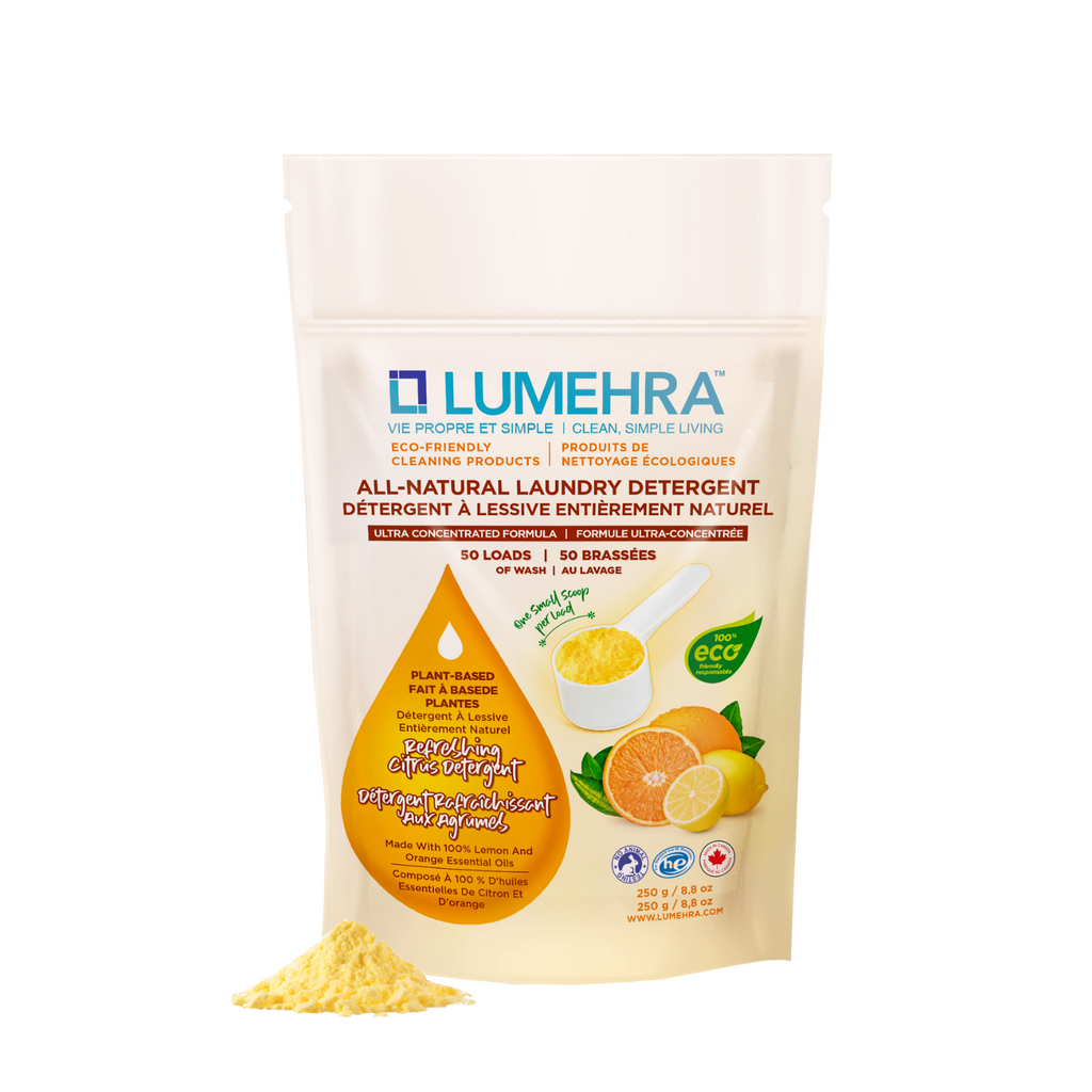 Experience a powerful clean with Lumehra's Natural Laundry Detergent Powder. Made in Canada, this ultra-concentrated, plant-based formula is gentle on sensitive skin and tough on stains. Free from bleach, sulphates, phosphates, and synthetic additives, it offers a refreshing citrus scent using natural essential oils. Eco-friendly and biodegradable, it's the perfect choice for health-conscious households.